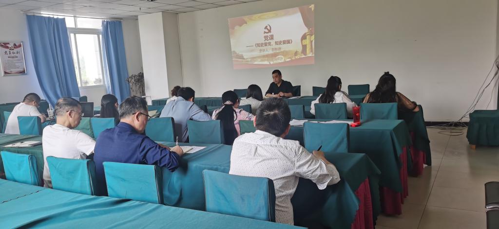 5月18日下午,机关二支部在思源楼209会议室召开了全体党员大会,会后,由支部书记彭彤彦同志为二支部全体党员上了一堂以“知史爱党,知史爱国”为主题的党课。