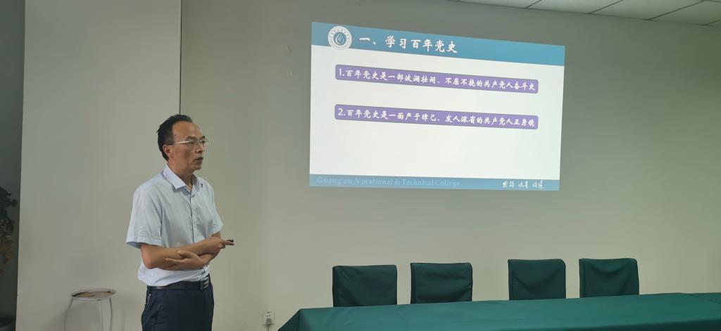 甘华银同志以《学百年党史,传红色精神,创广职辉煌》为题,回顾了我党百年的非凡历程和光辉历史,号召在座的全体党员要传承红色精神,再创广职辉煌,用自身不懈的努力,为党的百年华诞献礼。袁协民同志以周恩来总理对数字不许说“大概”的小故事引入演讲,借由伟人事迹引发深入思考,告诫我们党员同志一定要向老一辈的无产阶级革命者学习,在工作中保持求真务实的精神。李国梅同志结合自身的成长经历和教师的职业特点,倾情地讲述着身边的人、身边的事,对党倾诉着自己的满腔爱意。黄光兵同志和张耀元同志也围绕着党史的学习,分别从自身工作的开展推进情况和革命先烈精神感召下奋起的报国之志两个方面,阐述了自己作为普通党员的坚定信念和执着追求。