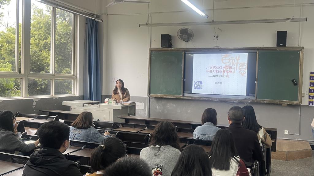 2022年3月29日下午,图书馆、档案馆在明德楼222召开了2022年广安职业技术学院档案管理工作业务培训会。本次培训的主讲人、档案馆馆员陈海燕同志从档案整理归档业务流程、整理编目中需要注意的事项等方面进行了讲解,特别强调了最新的档案归档要求。讲解结束后进行了现场交流答疑。副馆长唐安婷主持了会议,共计31名专兼职档案管理人员参加了此次培训。