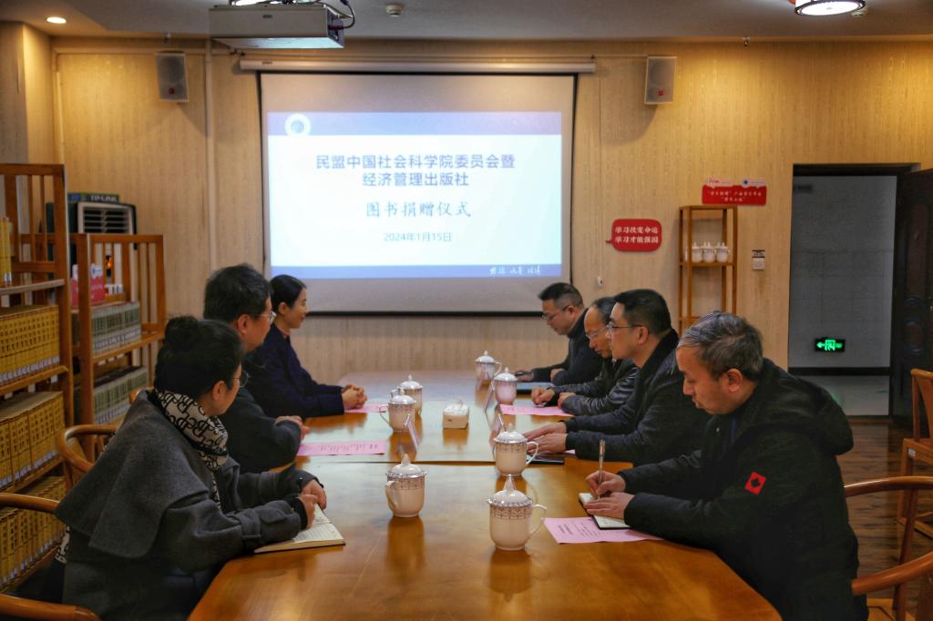 杨建华、白文春分别对经济管理出版社给予的惠赠表示感谢;学校将充分利用好这批图书为师生服务,不断丰富馆藏资源;同时希望双方在信息资源、图书出版、民主党派建设等方面加强合作交流。