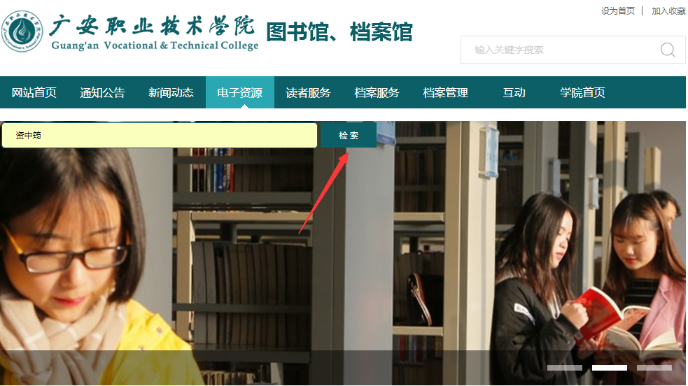 二、通过图书馆网站(https://tsg.gavtc.cn/)访问