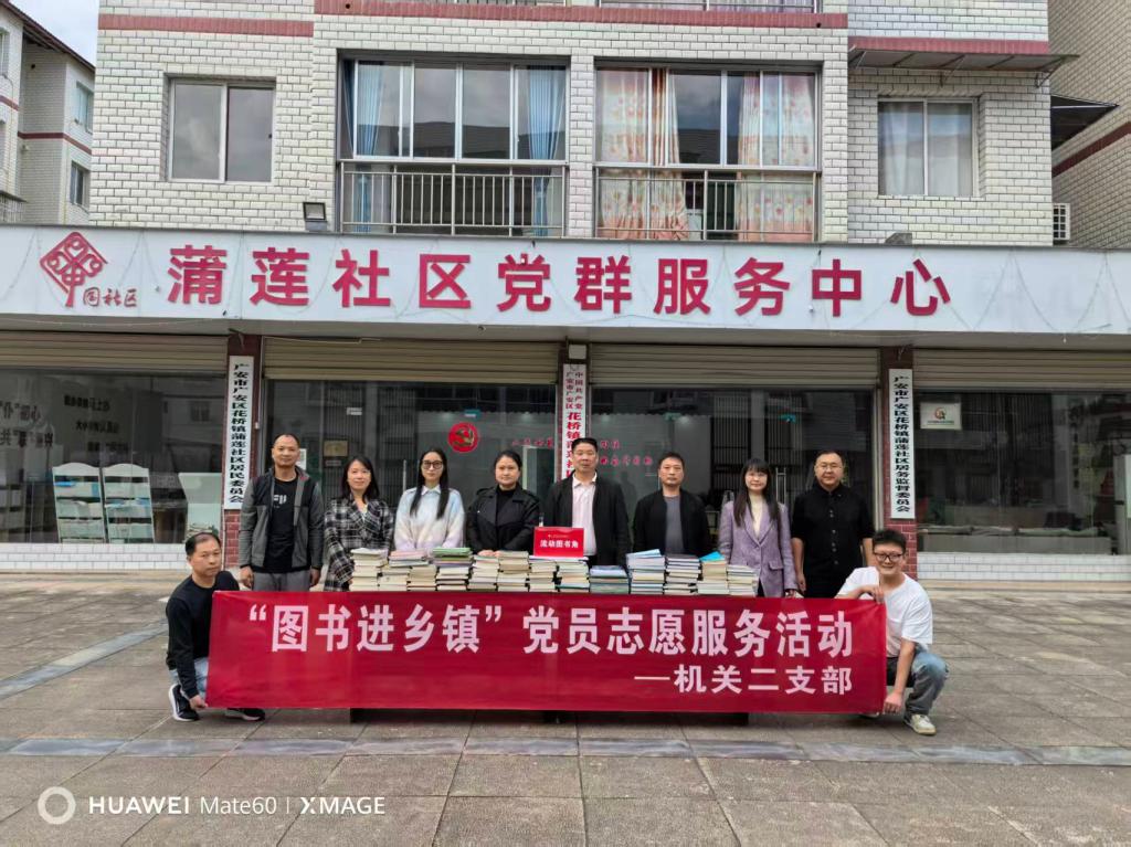 为深入推进文化惠民工程,切实解决乡镇社区居民“看书难、借书难”问题,10月28日,我校机关二支部一场充满书香与温情的“图书进乡镇”党员志愿服务活动在花桥镇蒲莲社区顺利开展,用实际行动为社区居民搭建起文化桥梁,助力学习型乡镇社区建设。